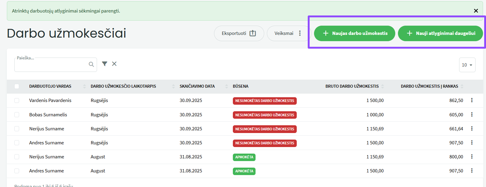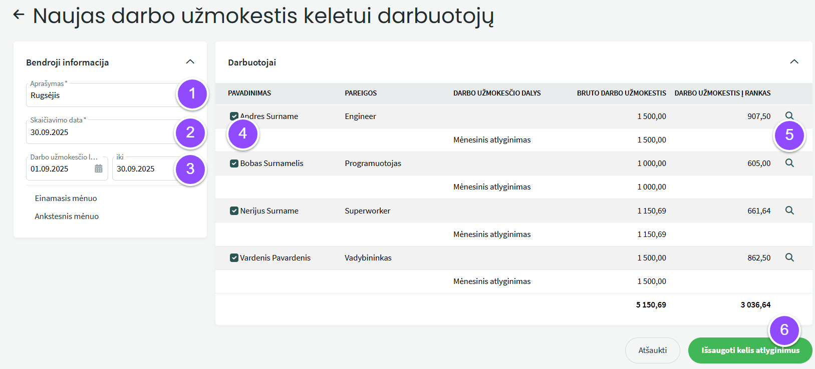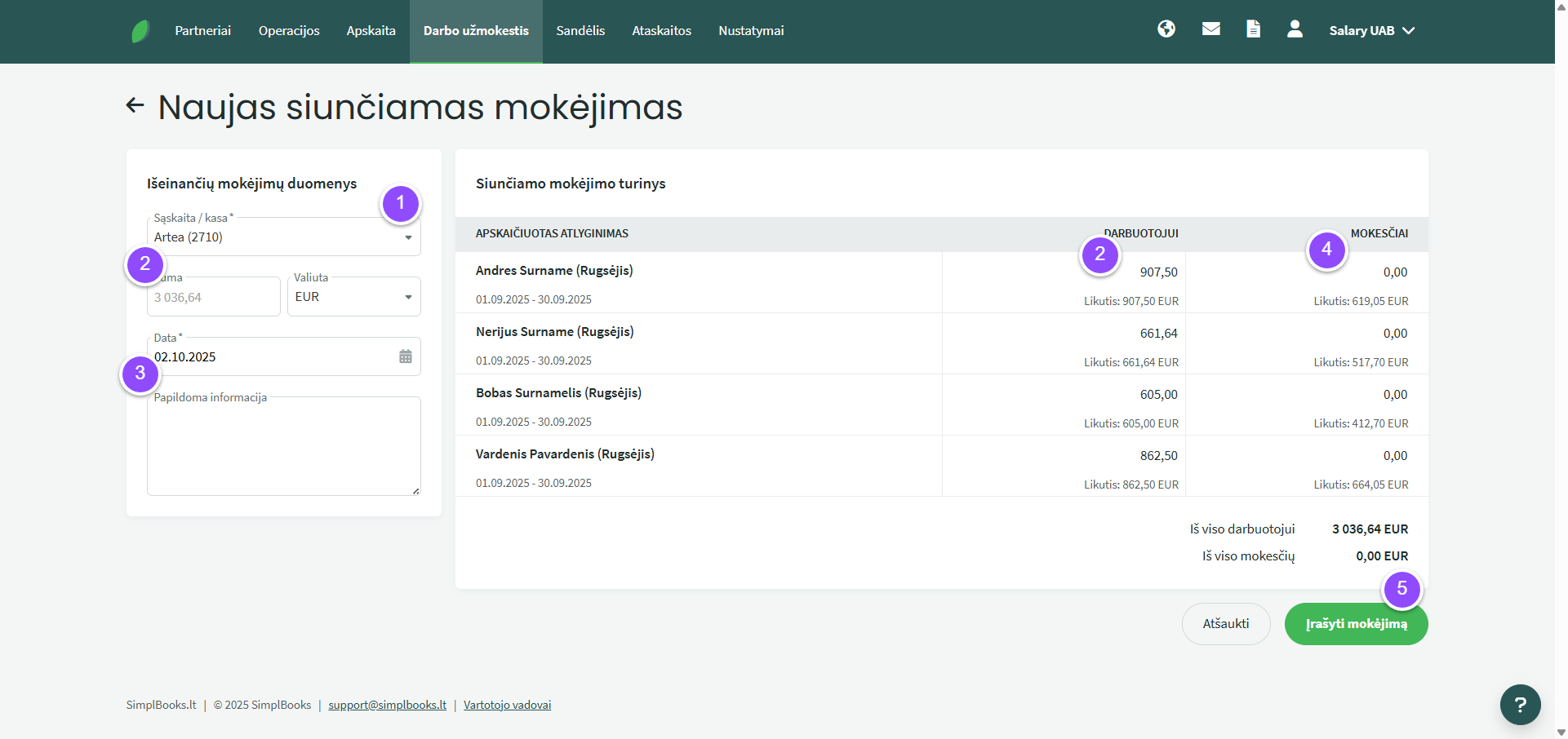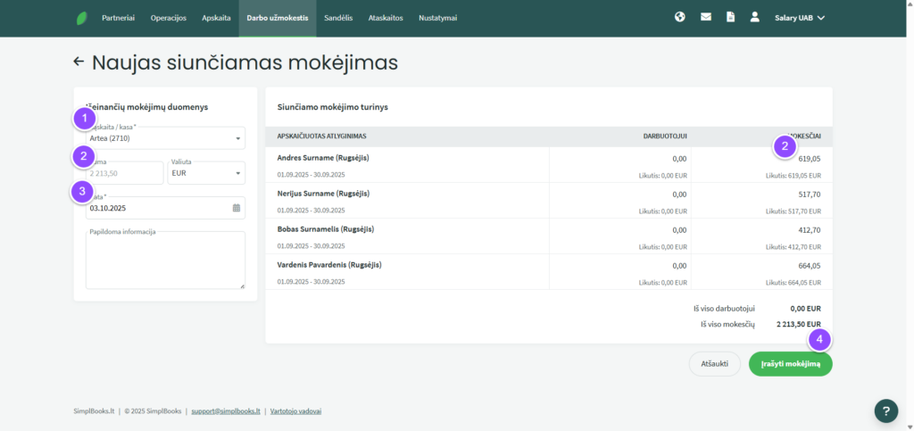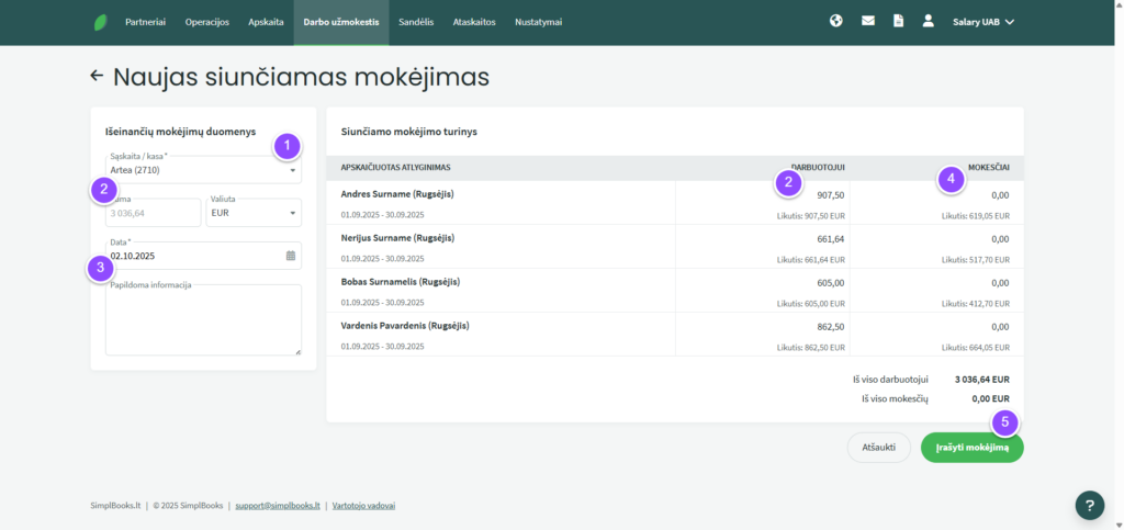● Išmokėjimai. Payments. Menu Payroll – Payments.