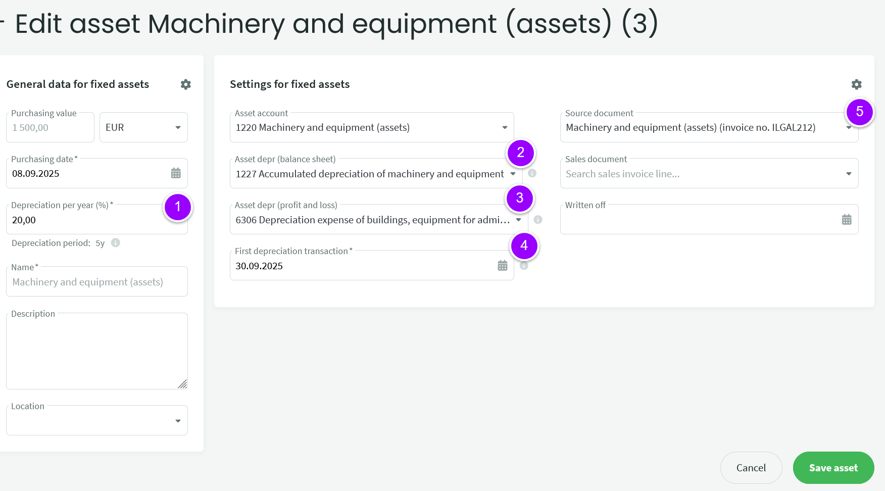 Please Note! Existing fixed assets, which are acquired prior to joining SimplBooks, can be registered according to the instructions: How to transfer existing fixed assets to SimplBooks?