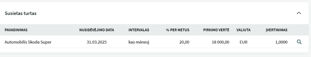 - Laukelyje “Turtas” pradėkite rašyti turto pavadinimą ir atsiradus reikiamam turtui – pasirinkite paspausdami.